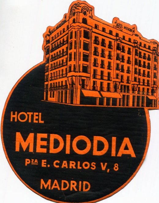 Spain Madrid Hotel Mediodia Luggage Label 1933