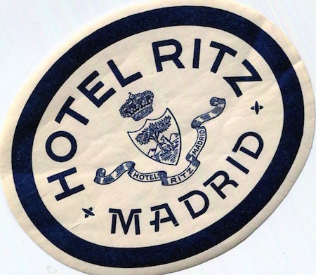 Spain Madrid Hotel Ritz Luggage Label 1925