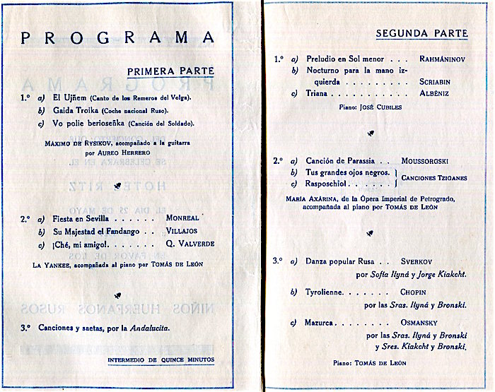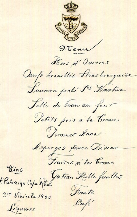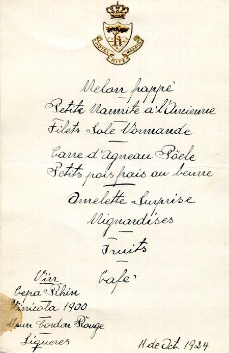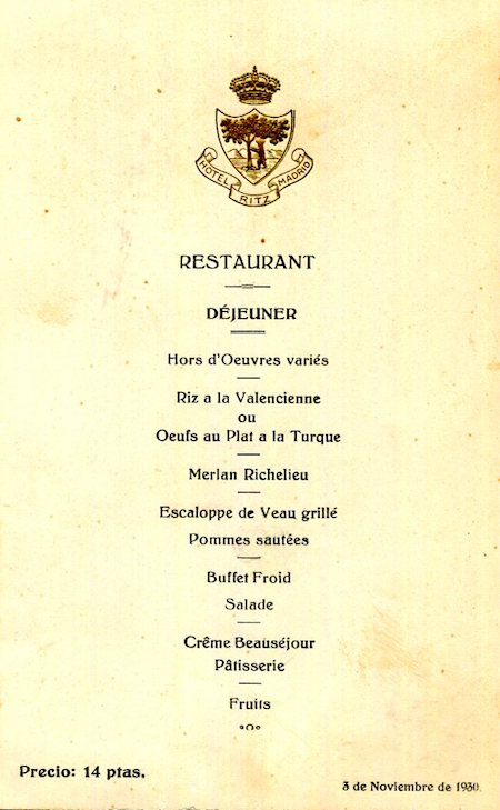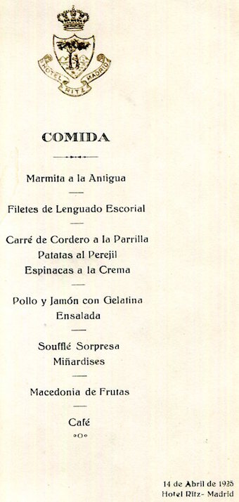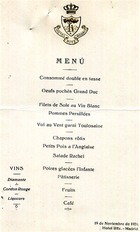 Spain Madrid Hotel Ritz Program 1924 Inside