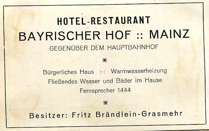 Germany Mainz Hotel Bayrischer Hof Business Card 1935