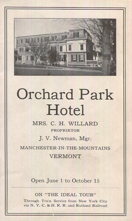 USA Vermont Manchester Brochure Hotel Orchard Park 1915 Front