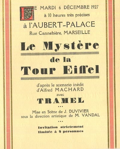 France Marseille Entertainment Cinema L Aubert Palace Invitation Le Mystere De La Tour Eiffel 1927 Front