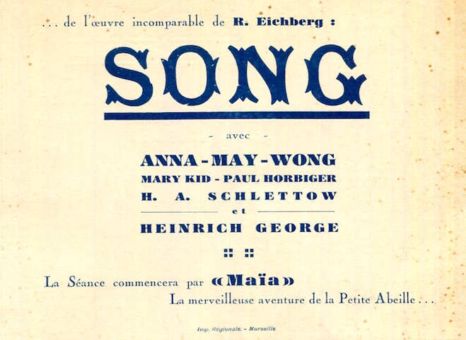 France Marseille Entertainment Cinema Ode on Cinema Theater Invitation Song Anna May Song 1929 Back