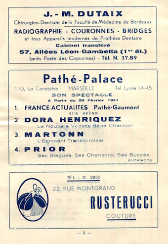 France Marseille Entertainment Cinema Pathe Palace Program Le Danube Bleu 1941 Inside 1