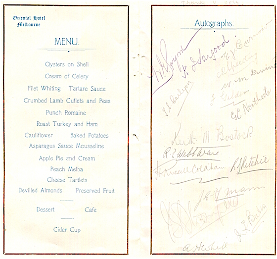 Australia Melbourne Menu Hoptel Oriental Hotel Geelong Grammar School Row Boat Race Dinner 1920 Inside