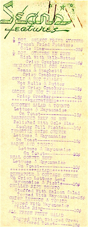 USA Tennessee Memphis Menu Restaurant Sears Soda Fountain 1941 Inside 3