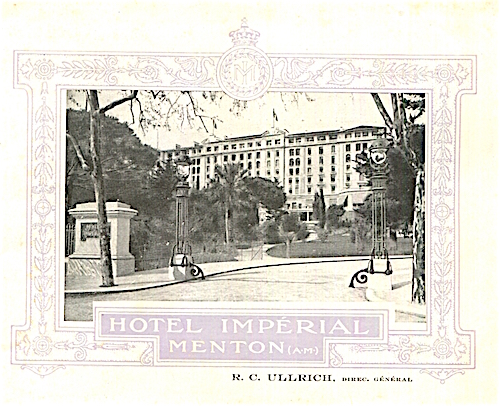 France Menton Hotel Imperial Brochure 1905 Front