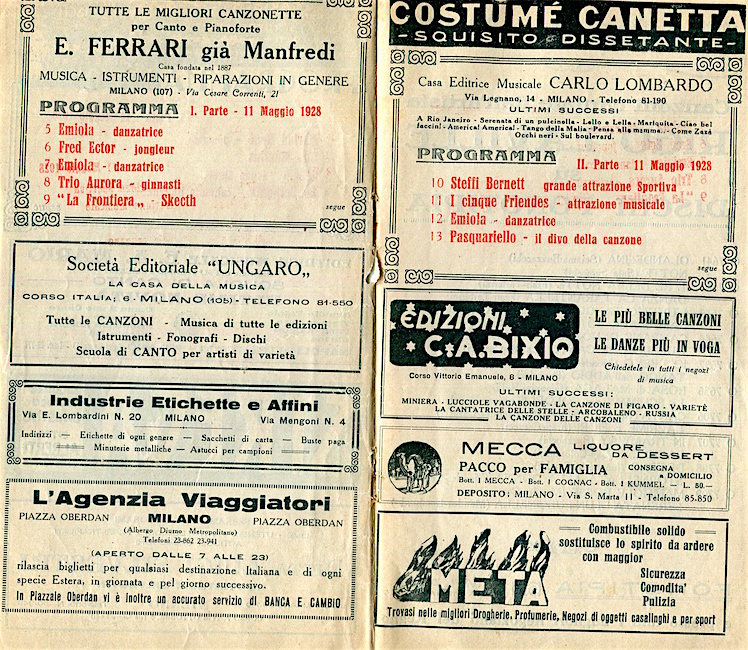 Italy Milan Entertainment Apollo Theater Program 1928 Inside 1
