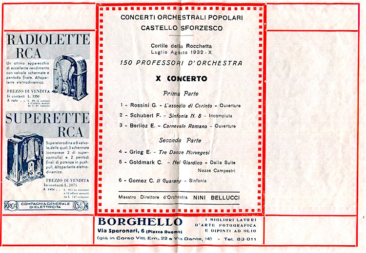 Italy Milan Entertainment Castello Sforzesco Program 1932 Front