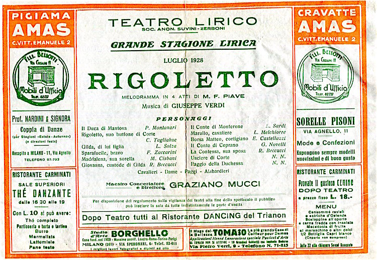 Italy Milan Entertainment Lirico Theater Program 1928 Front