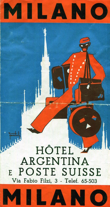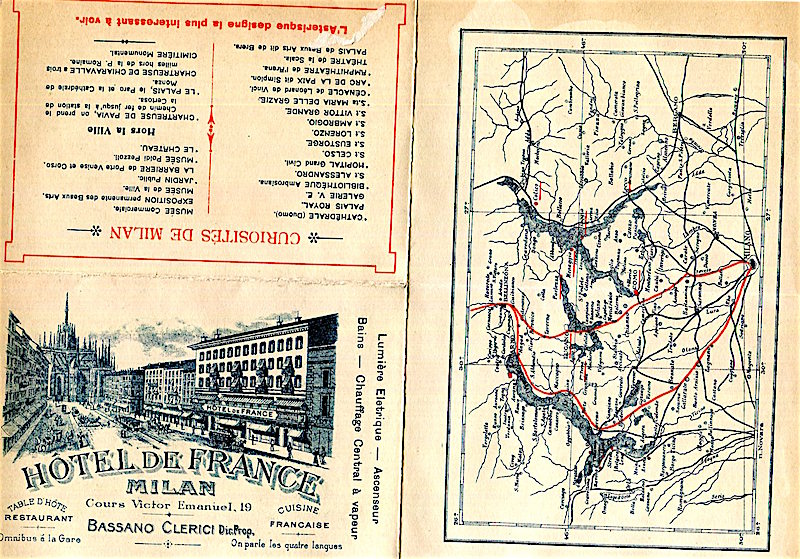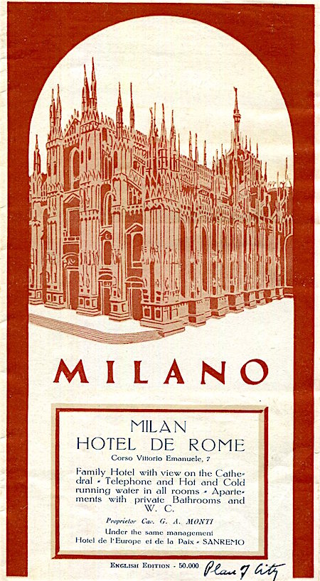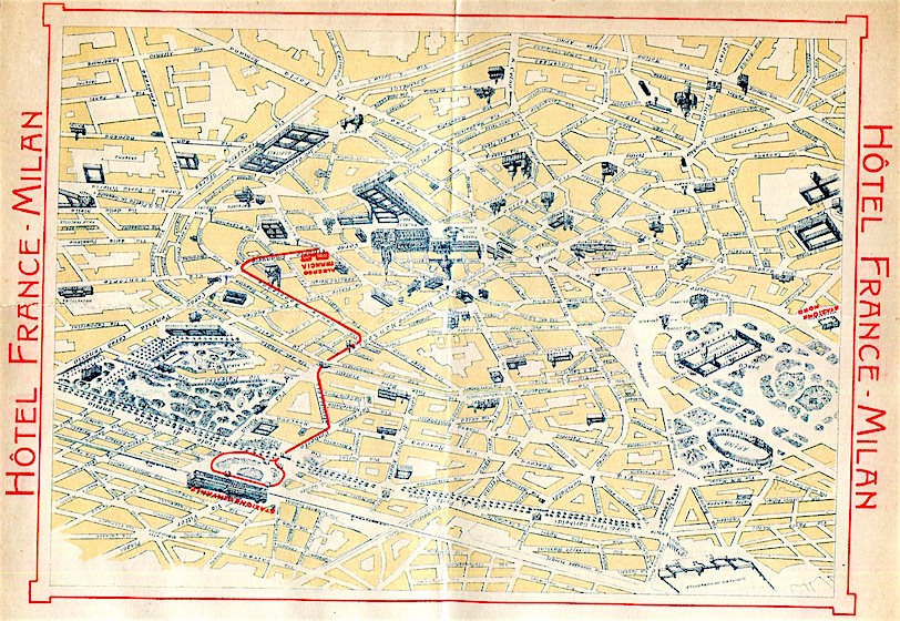 Italy Milan Hotel Argentina & Poste Suisse Map 1938
