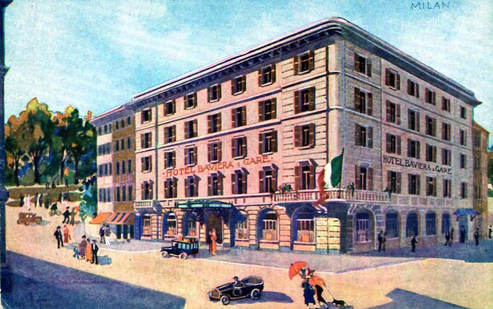 Italy Milan Hotel Baviera & De La Gare Postcard 1910