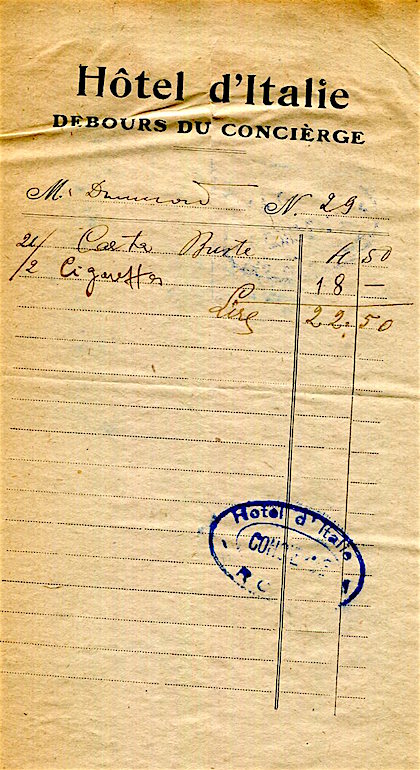 Italy Milan Hotel Du Nord Room Card 1926 Back