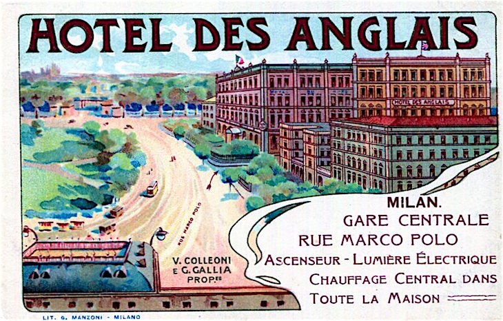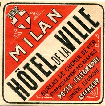 Italy Milan Hotel De La Ville Luggage Label 1910