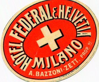 Italy Milan Hotel Fedetal & Helvetia Luggage Label 1910