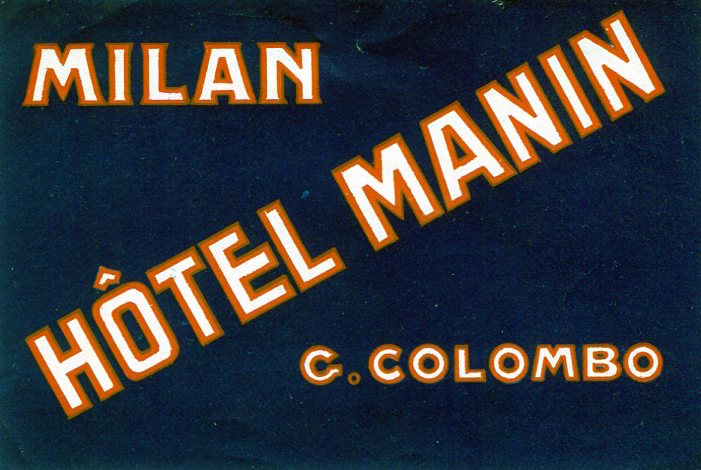 Italy Milan Hotel Manin Luggage Label 1924-1