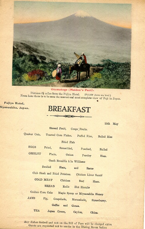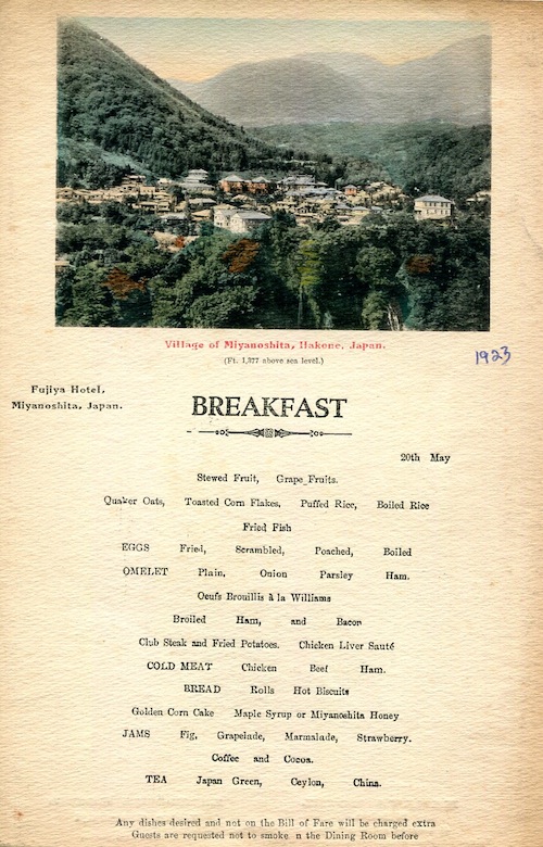 Japan Miyanoshita Menu Fujiya Hotel 1923-3
