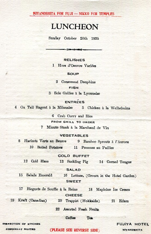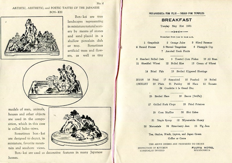 Japan Miyanoshita Menu Fujiya Hotel 1929-2
