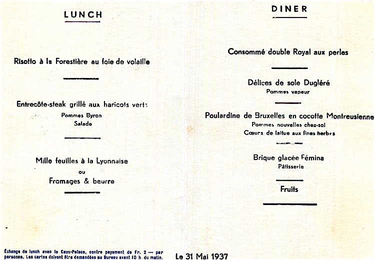 Switzerland Montreux Palace Hotel Menu 1937 Front