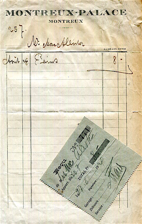 Switzerland Montreux Palace Hotel Receipt 1924