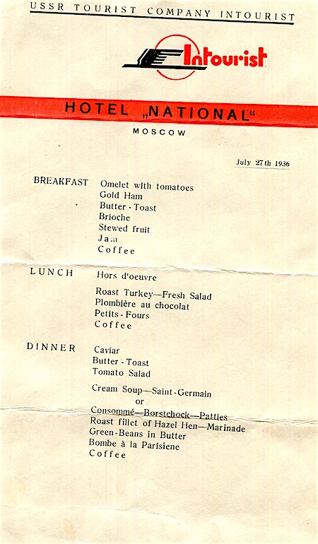 Soviet Union Moscow Hotel National Seat Reservation 1936