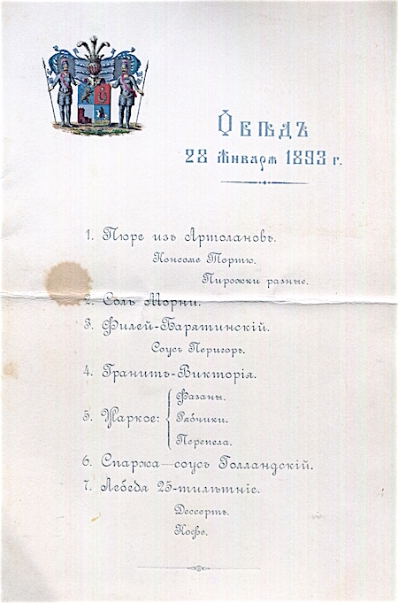 Russia Moscow Royalty Aristocracy Bariatinsky Palace Roayl Menu 1892 Inside