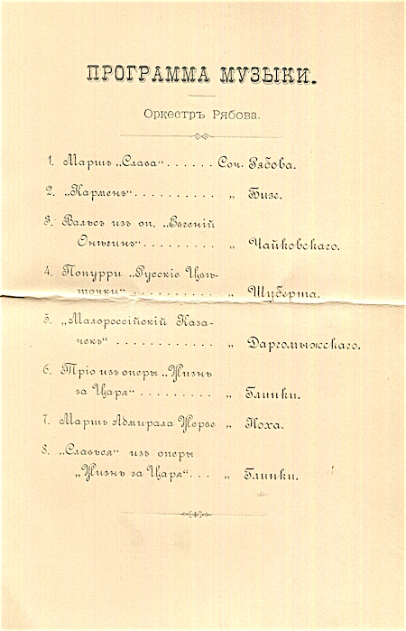 Russia Moscow Royalty Aristocracy Menu Ryabov Orchestra 1893 Front