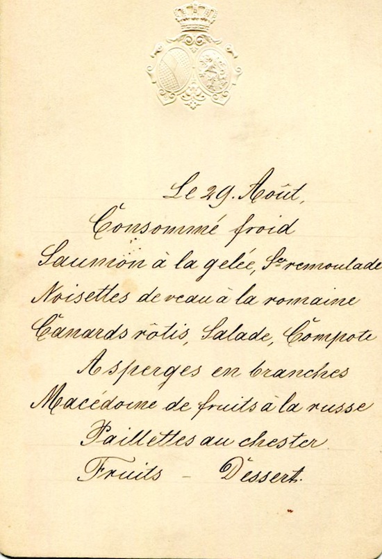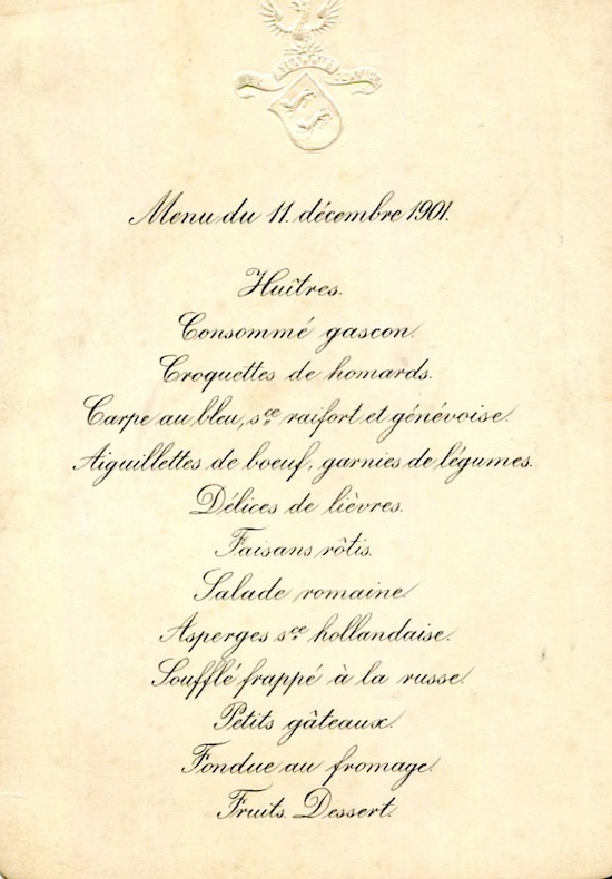 Germany Munich Special Occasion Royal Menu Hohenlohe 1901