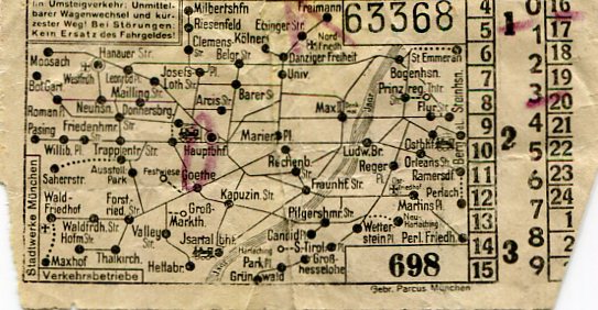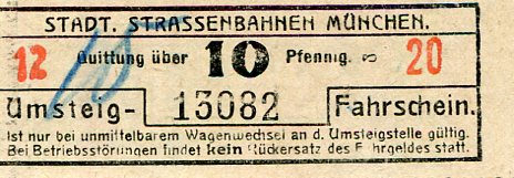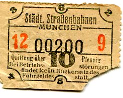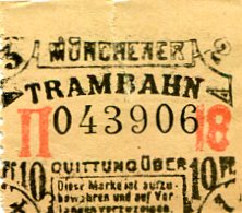 Germany Munich Tram Ticket 1942