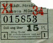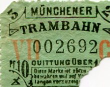 Germany Munich Tram Ticket 1912