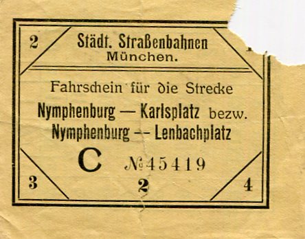 Germany Munich Tram Ticket 1909-2