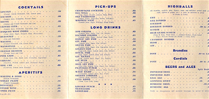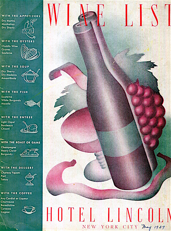 USA New York NYC Wine Menu Hotel Lincoln 1939 1 Inside 1
