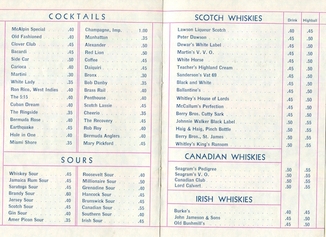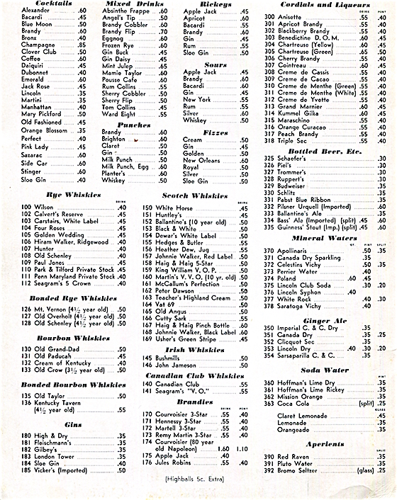 USA New York NYC Wine Menu Hotel McAlpin 1937 Inside 2