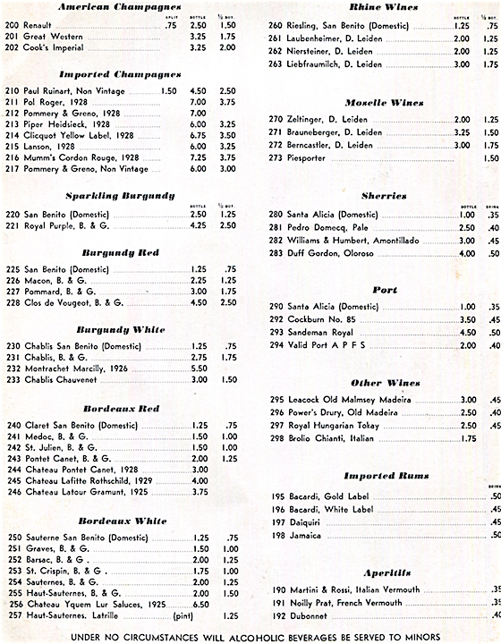 USA New York NYC Wine Menu Hotel Astor 1905 Inside 7