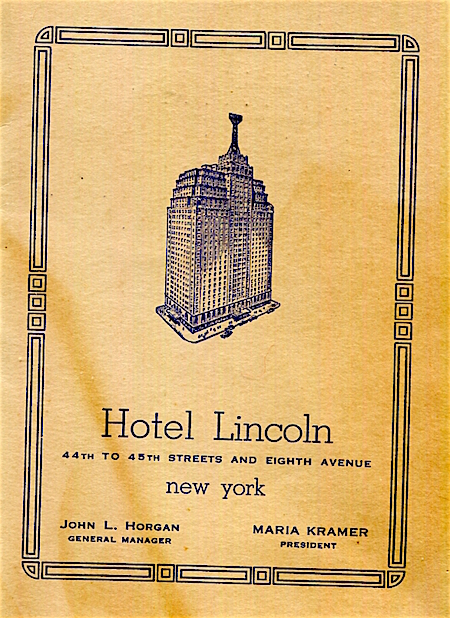 USA New York NYC Wine Menu Hotel Lincoln 1939 2 Front