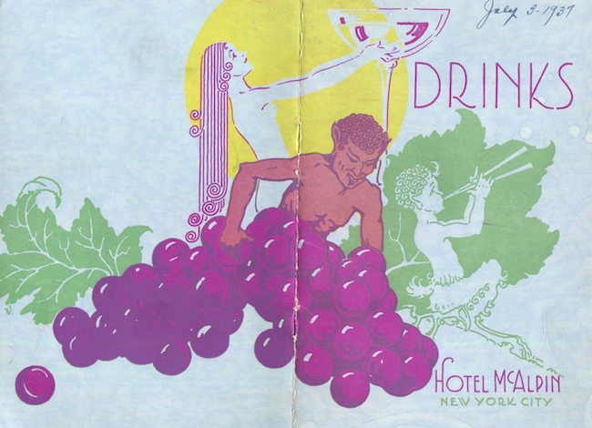 USA New York NYC Wine Menu Hotel McAlpin 1937 Front
