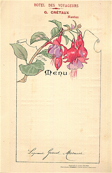 France Nantes Hotel Des Voyageurs Wine Menu 1894 Front