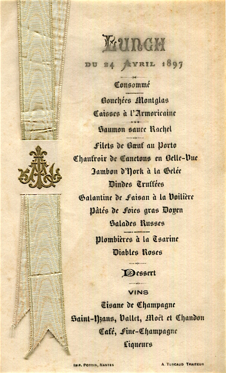 France Nantes Special Occassion Menu 1897