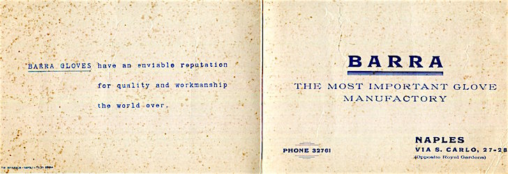 Italy Naples Commerce Barra Leaflet Gloves 1938 Back