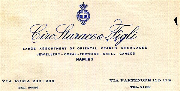 Italy Naples Commerce Business Card Ciro Starace & Figli Jewelry 1925