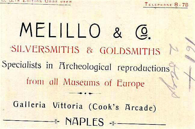 Italy Naples Commerce Business Card Melillo & Co Reporoductions 1928