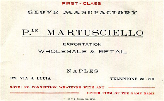 Italy Naples Commerce Business Card P Martusciello Gloves 1932