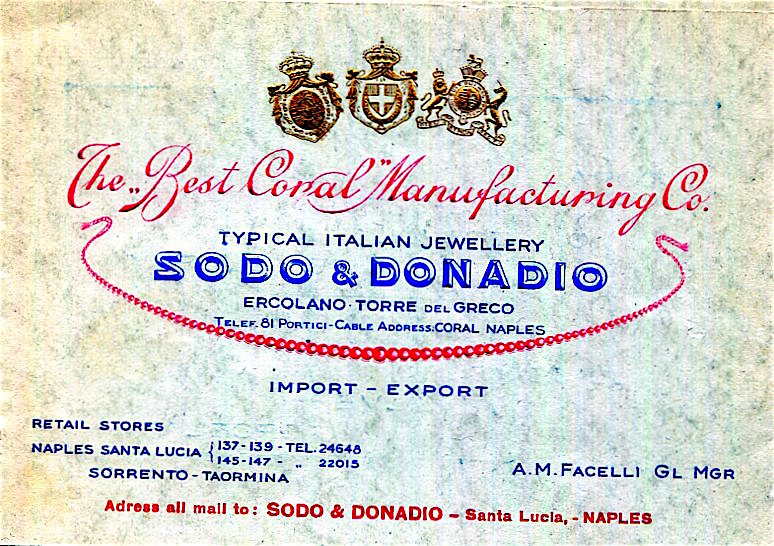 Italy Naples Commerce Sodo & Donadio Bussiness Card Jewelry 1932