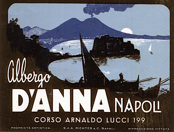Italy Naples Hotel D Anna Luggage Label 1938