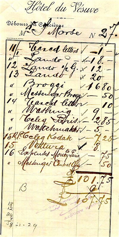 Italy Naples Hotel Du Vesuve Receipt 1904