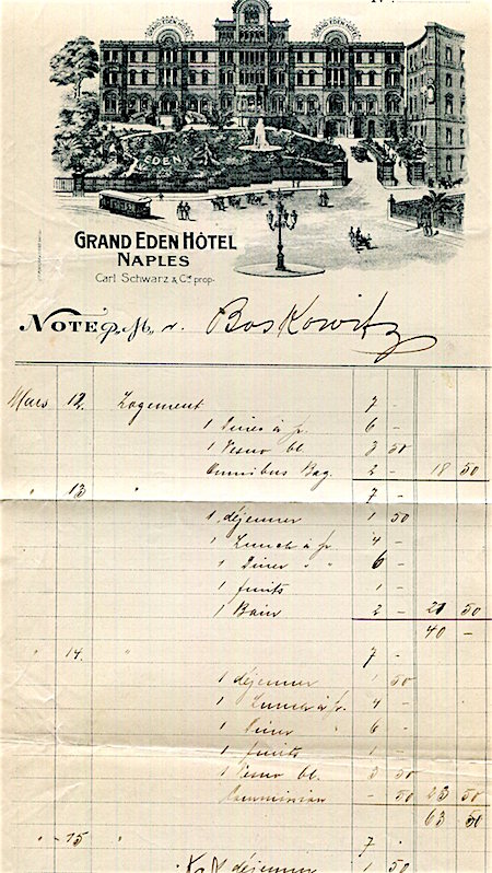 Italy Naples Hotel Grand Eden Hotel Receipt 1902