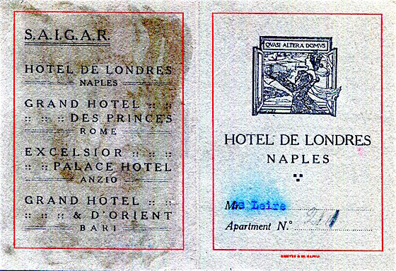 Italy Naples Hotel Londres Luggage Label 1932