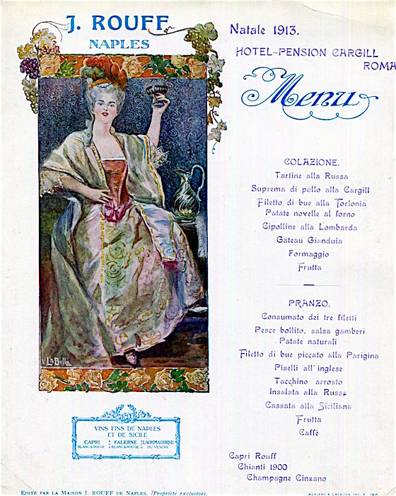 Italy Naples Hotel Pension Chargil Roma Menu 1913