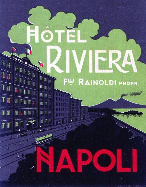 Italy Naples Hotel Riviera Luggage Label 1938