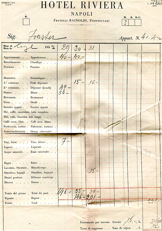 Italy Naples Hotel Riviera Receipt 1932
